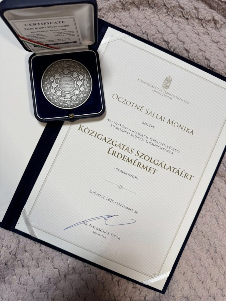 A Közigazgatási Szolgálatért Érdemérmet idén 40 kiváló anyakönyvvezető vehette át. A díjazottak között szerepel Oczotné Sallai Mónika is, aki immár 33 éve szolgálja a város lakosságát az anyakönyvi ügyek területén.