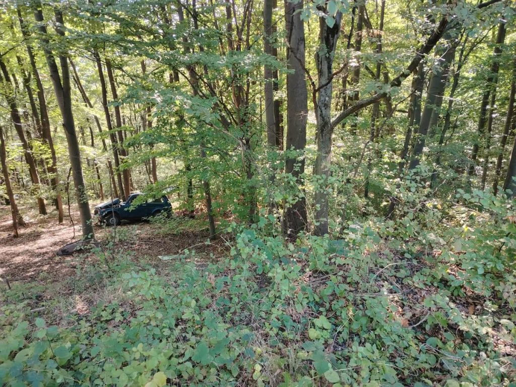 Egy személygépkocsi a tűkanyarnál eddig tisztázatlan okból lesodródott az útról, majd a fák közé hajtva az árokban állt meg. A járműben két ember utazott, akik könnyű sérüléseket szenvedtek, de saját erejükből ki tudtak szállni az autóból.