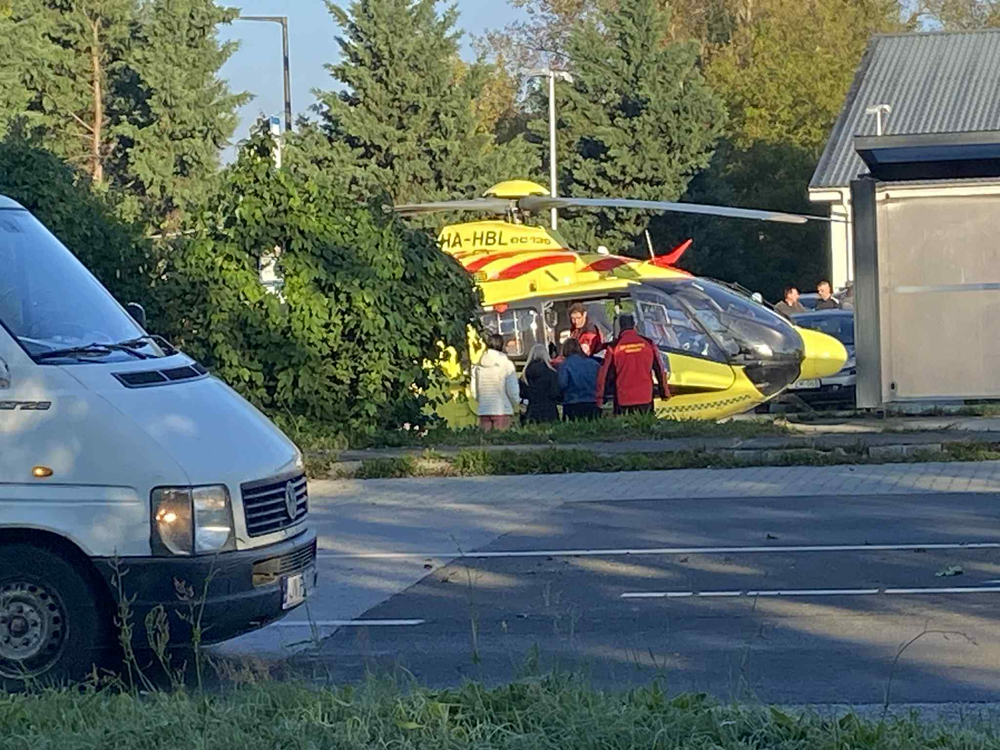 A súlyos állapot miatt a mentőszolgálat helikoptert is riasztott, amely a közeli üzletlánc parkolójában szállt le. A helyszínre több mentőegység érkezett, hogy támogassák az életmentést.