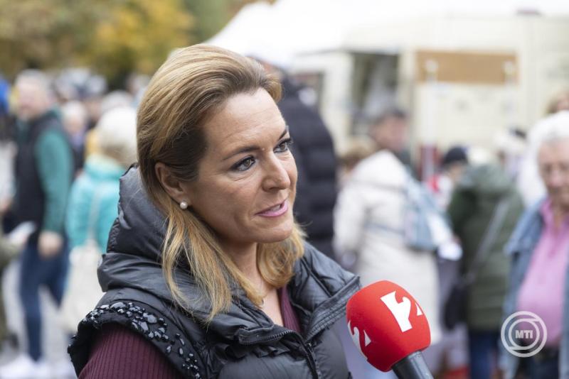 Szentendre, 2025. október 18. Vitályos Eszter kormányszóvivő, a térség fideszes országgyűlési képviselője a szentendrei piacon tartott aláírásgyűjtésen 2025. október 18-án. A Fidesz azért indított aláírásgyűjtést Brüsszel háborús tervei ellen, mert a háború kitörése óta az az álláspontja, hogy békére van szükség, és amíg a háború tart Európa, így Magyarország sem számíthat gazdasági fellendülésre – jelentette ki Vitályos Eszter az aláírásgyűjtés szentendrei állomásán. MTI/Kocsis Zoltán