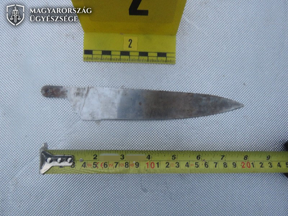 Ezután hárman támadtak a sértettre: a haját tépték, kővel ütötték, végül a 22 éves vádlott egy 22 centiméteres pengehosszúságú, nyél nélküli késpengével mindkét lábán megszúrta a nőt.