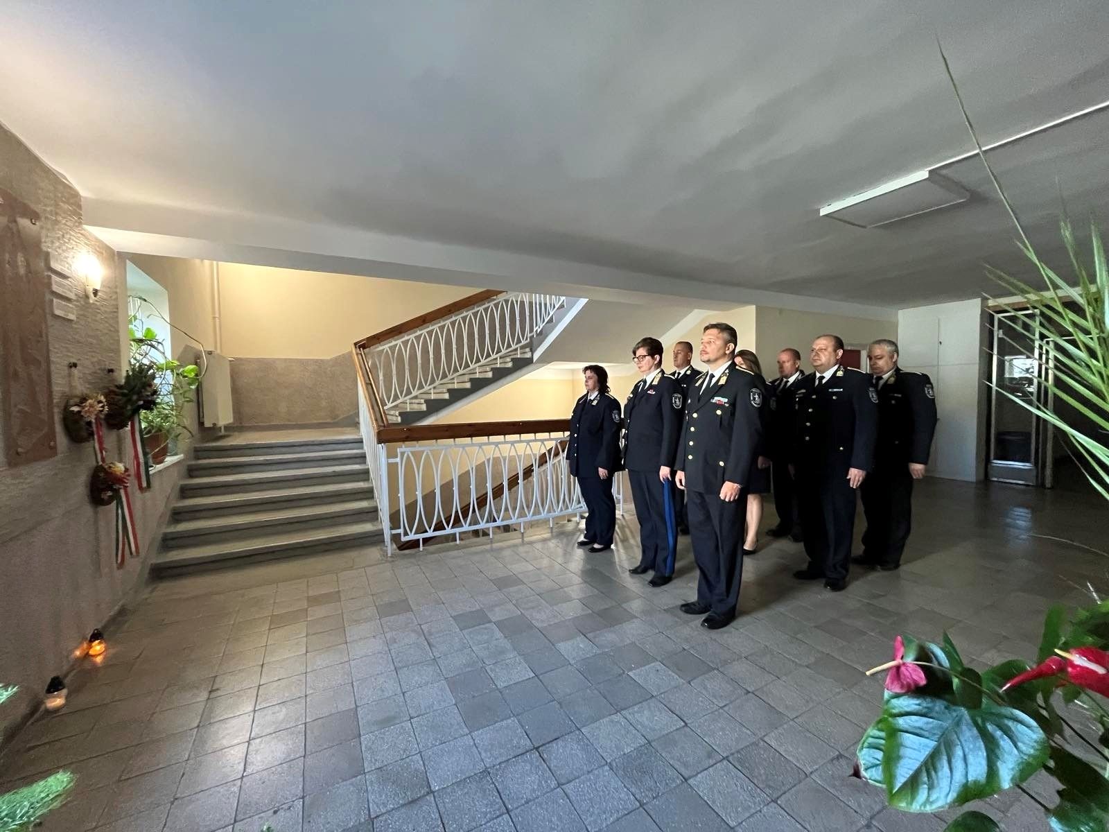 A rendőri vezetők néma főhajtással tisztelegtek mindazon hivatásos állományú rendőrök emléke előtt, akik szolgálat közben hősi halált haltak, példát mutatva bátorságból és önfeláldozásból.