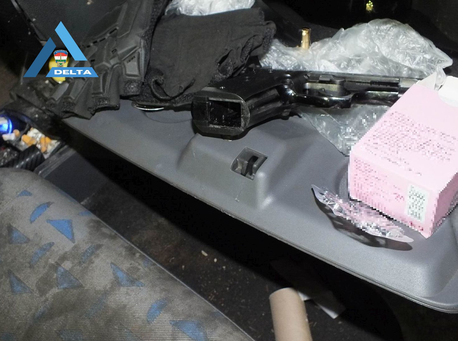 A rendőrök a kesztyűtartóból egy gáz-riasztó fegyvert is előkerítettek, amelyet tulajdonosa engedély nélkül tartott magánál, így azt szintén lefoglalták.