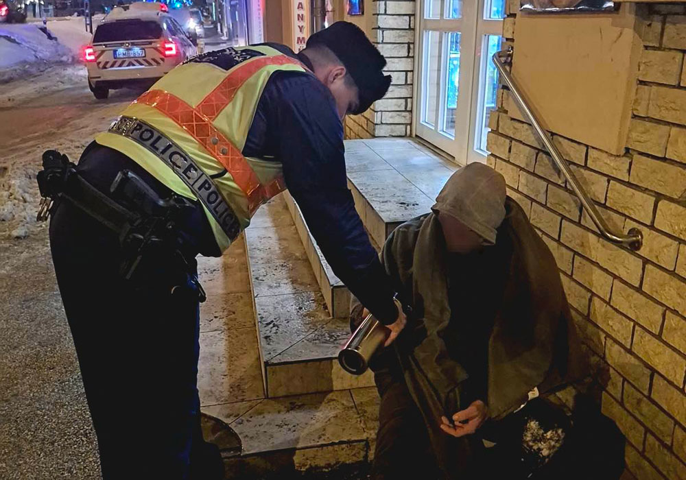 Az egyenruhások megszólították a férfit, aki elmondta nekik, hogy nincs hova mennie, fázik, és rosszul érzi magát. A rendőrök azonnal intézkedtek: mentőt hívtak, majd a segítség megérkezéséig betakarták a férfit, és forró teával kínálták, hogy enyhítsék az átfázás tüneteit.