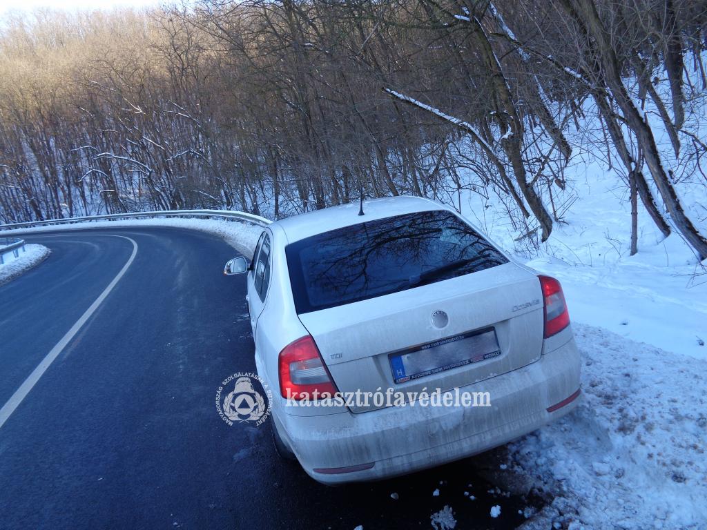 Megcsúszott és a szalagkorlátnak ütközött egy személyautó hétfő délelőtt a 2122-es számú úton, Nagylóc közelében – tájékoztatott a Nógrád Vármegyei Katasztrófavédelmi Igazgatóság. A balesethez a szécsényi hivatásos tűzoltókat riasztották.