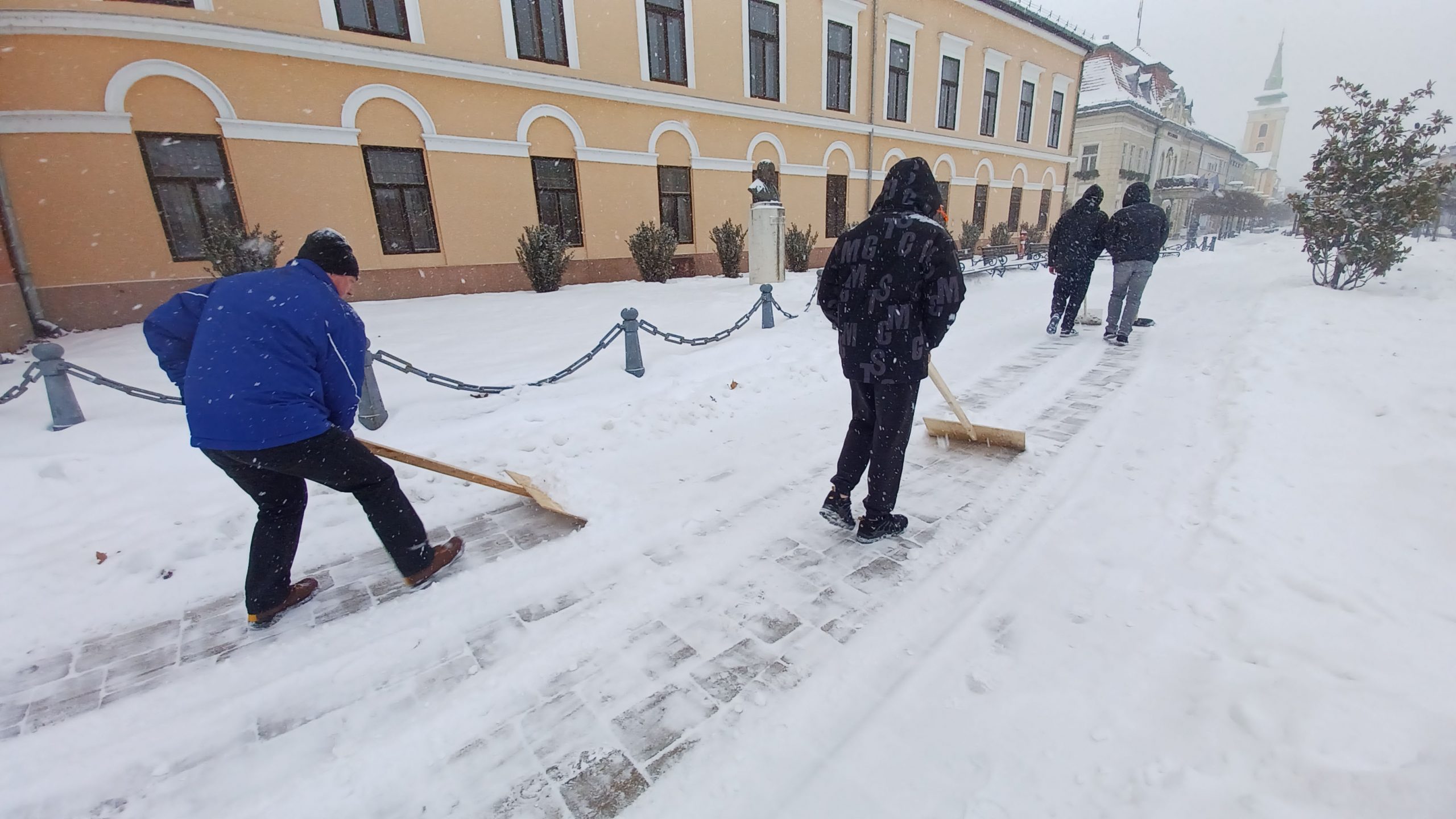 Kiemelte: múlt hét óta a három helyi technikum diákjai önkéntesként segítik a takarítást, összesen legalább 30 diák járul hozzá ahhoz, hogy továbbra is járhatók legyenek a belvárosi járdák.